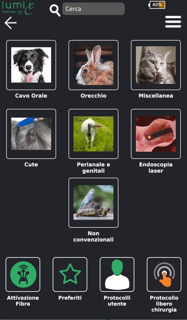 Il Wizard guida il Veterinario nella selezione dei numerosi protocolli chirurgici e terapeutici preimpostati grazie a un software intuitivo e ad una nuova interfaccia smart.